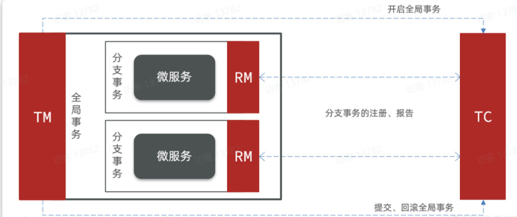 • ​TC(事务协调者)​​:协调全局事务,维护事务状态,决策提交或回滚