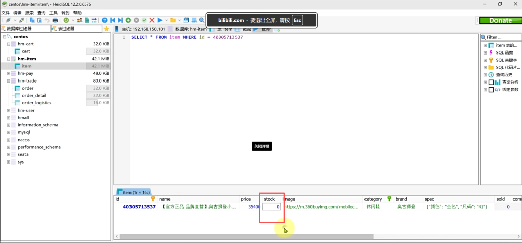 然后不要立即提交订单,先去数据库把其中至少一个商品的库存调整成0。