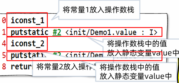初始化阶段会执行静态代码块中的代码,并为静态变量赋值。初始化阶段会执行字节码中的client部分的内容。clinit方法中的执行顺序与Java中编写的顺序是一致的。