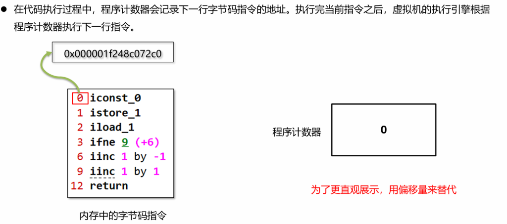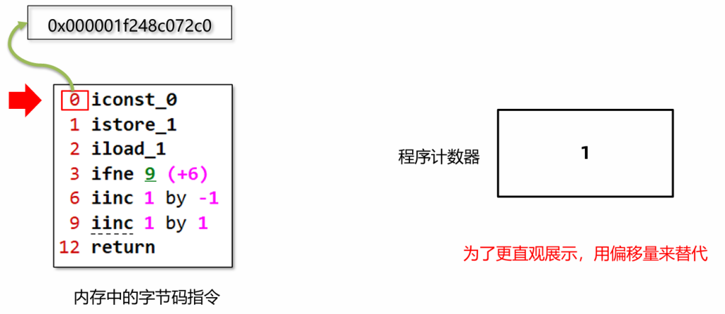 程序计数器(Program Counter Register)也叫PC寄存器,每个线程会通过程序计数器记录当前要执行的的字节码指令的地址。例子: