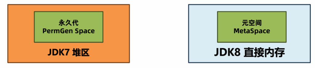 ⚫ JDK7及之前的版本将方法区存放在堆区域中的永久代空间,堆的大小由虚拟机参数-XX:MaxPermSize=值来控制。