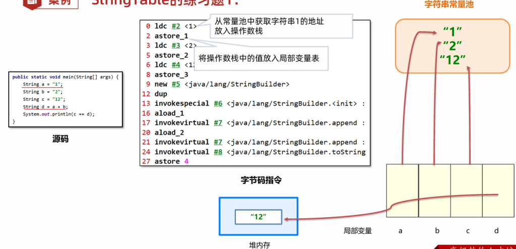 • 字符串常量池:保存了字符串常量