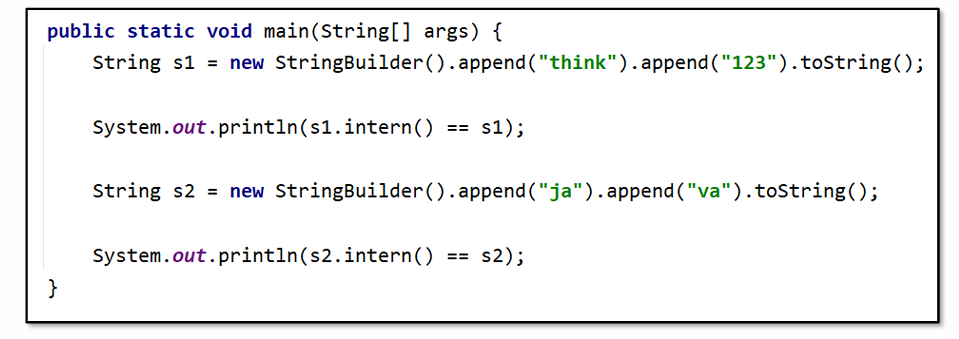 JDK6版本中intern () 方法会把第一次遇到的字符串实例复制到永久代的字符串常量池中,返回的也是永久代里面这个字符串实例的引用。JVM启动时就会把java加入到常量池中。