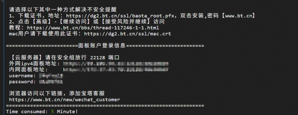 然后浏览器访问刚刚记住的“内网面板地址”,使用username、password登录