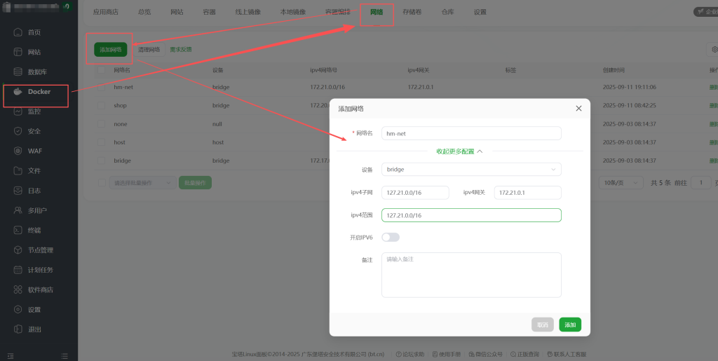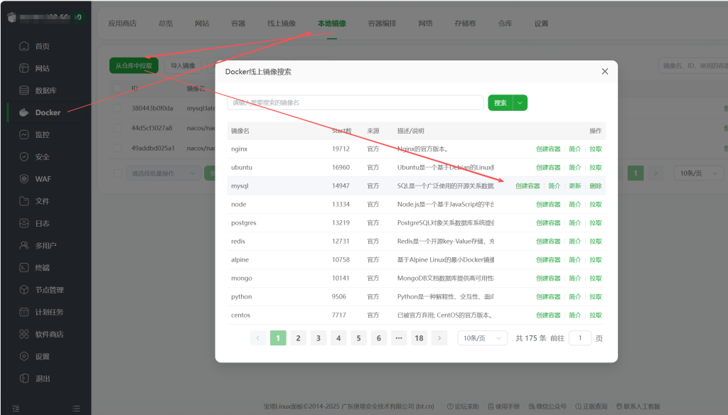 左侧应该有Docker(如果没有Docker,就去“软件商店”下载)