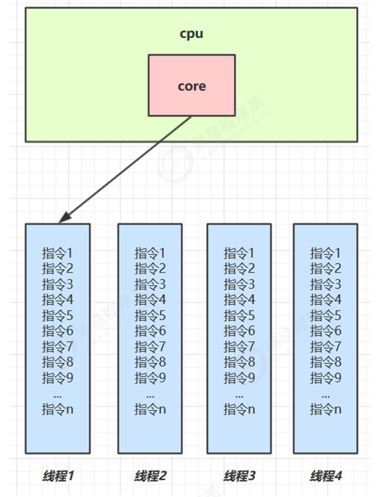 - 一个线程就是一个指令流,将指令流中的一条条指令以一定的顺序交给 CPU 执行